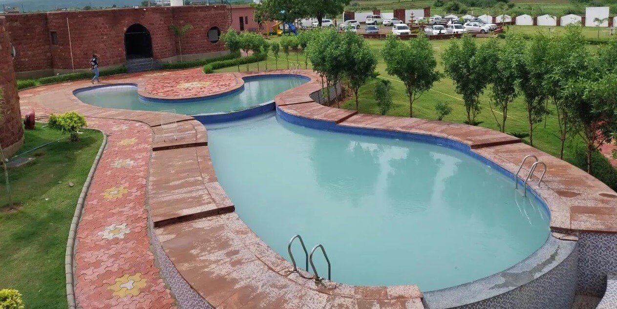 Immerse yourself in serenity at our stunning resort swimming pool, a refreshing oasis nestled amidst the picturesque landscape of Abu Road.